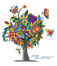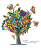 「百花樹」象徵打不死的正能量。提醒大家世上無難事,只怕有心人。希望大家共同努力,發揮潛能,百花齊放,大放異彩,用心傳遞愛,畫出正能量!